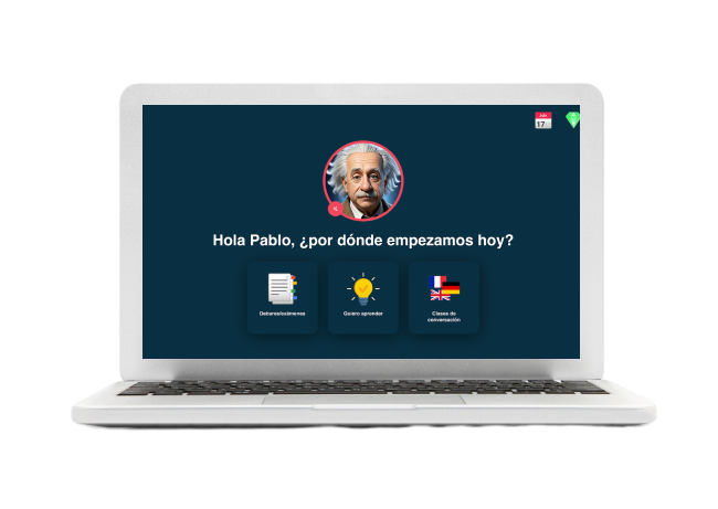 Tenha horas ilimitadas de conversação com um professor virtual de inglês, francês e alemão.